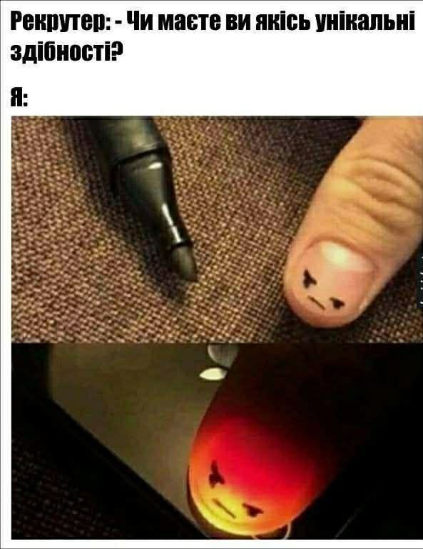 25 Травня 2025 Унікальні здібності Гадззилла Гумор Комментариев нет гумор, емодзі, здібність, рекрутер, співбесіда