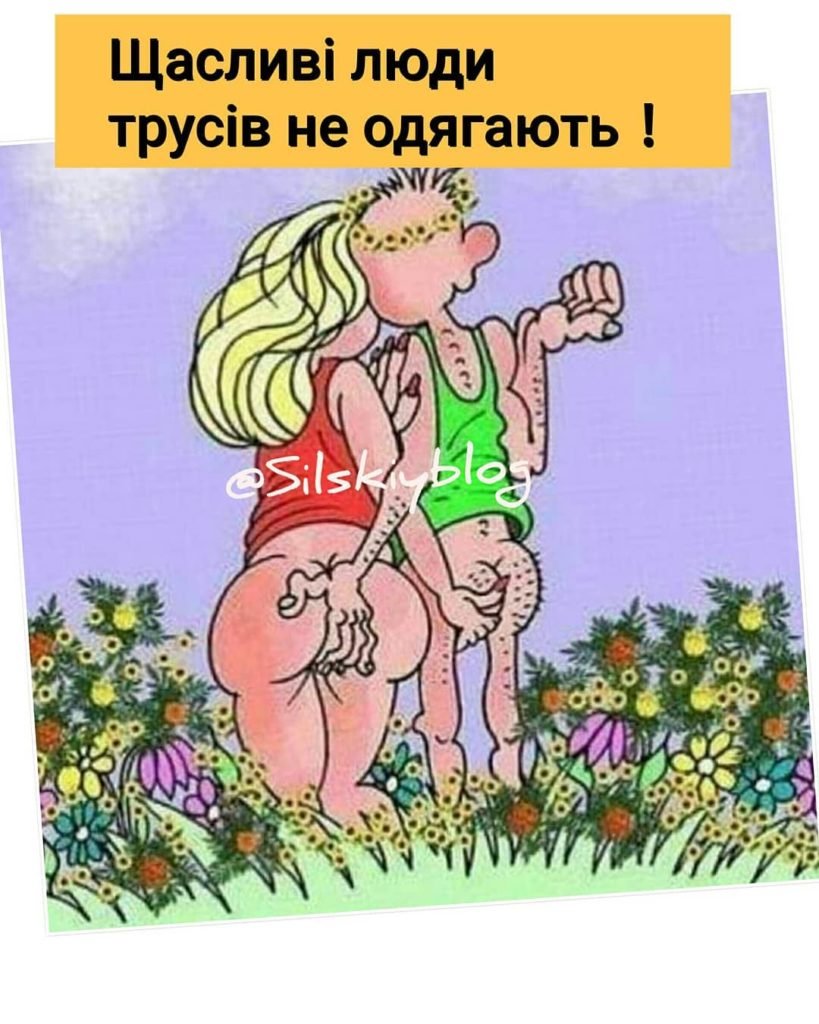 4 Січня 2019 Щасливі люди трусів не одягають Послать ссылку на этот обзор другу по Viber, Skype, WhatsApp, ICQ или E-Mail:Разместить у себя на ресурсе или в ЖЖ:На любом форуме в своем сообщении: Нет похожих записей. Гадззилла Гумор Комментариев нет гумор, приколи, труси, щастя