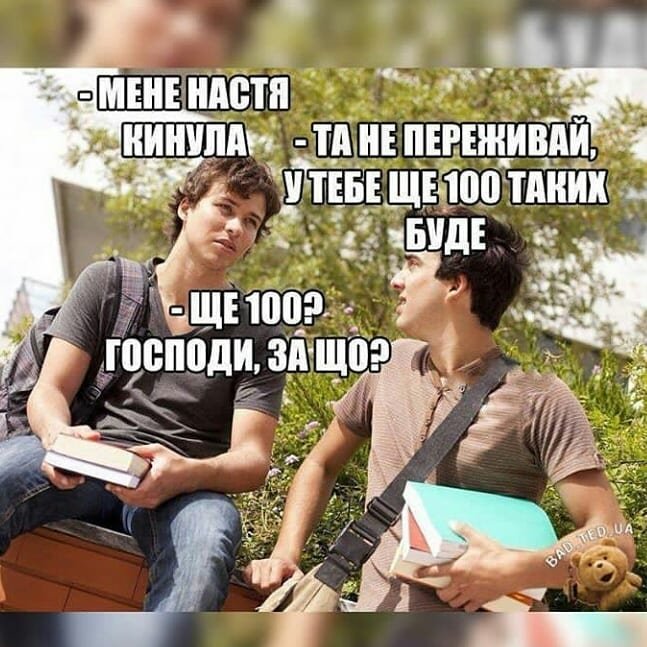 11 Березня 2019 У тебе ще 100 таких буде Послать ссылку на этот обзор другу по Viber, Skype, WhatsApp, ICQ или E-Mail:Разместить у себя на ресурсе или в ЖЖ:На любом форуме в своем сообщении: Нет похожих записей. Гадззилла Гумор Комментариев нет гумор, дівчина, любовь, хлопець