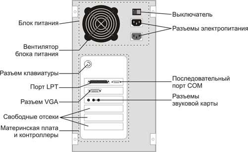 неправильном соединении в лучшем случае компьютер не заработает, в худшем - вылетет. Сзади такой системный блок выглядит вот так: