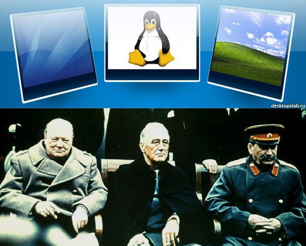 Войны. Для сравнения приводится эмблема форума DesktopsLAB и ее расшифровка по подобию с порядком расположения лидеров трех стран: